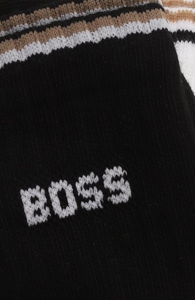 Носки с жаккардовыми полосками и логотипом на паголенке выполнили из рифленого эластичного трикотажа на основе хлопка. В комплекте – три пары с плюшевой внутренней отделкой на подошве.