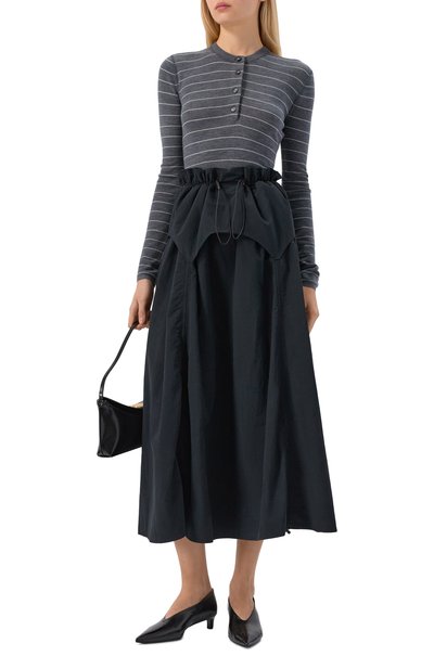 Для пошива плиссированной миди-юбки использовали атласный полиэстер. Модель с широким эластичным поясом сможет органично дополнить образ с поло и мюлями в тон.