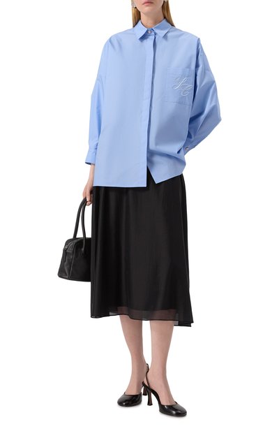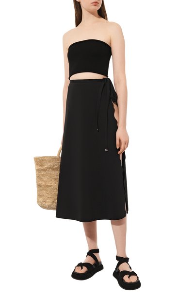 Для пошива плиссированной миди-юбки использовали атласный полиэстер. Модель с широким эл астичным поясом сможет органично дополнить образ с поло и мюлями в тон.