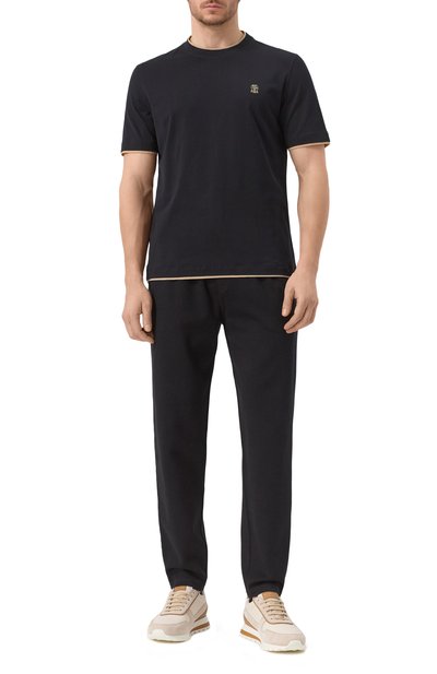Брюки из хлопка френч терри с добавлением полиамида подойдут для создания непринужденного повседневного образа. Под поясом со шлевками заложили несколько защипов. Модель кроя tapered fit дополнили боковыми и задними карманами.
