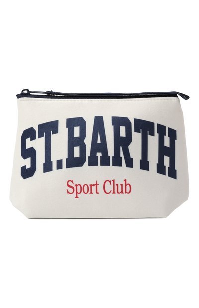 Косметичка Aline с надписью St.Barth Sport Club сшита из плотного текстиля. Аксессуар застегивается молнией, на пуллере которой закрепили ручку-петлю из ленты грогрен.