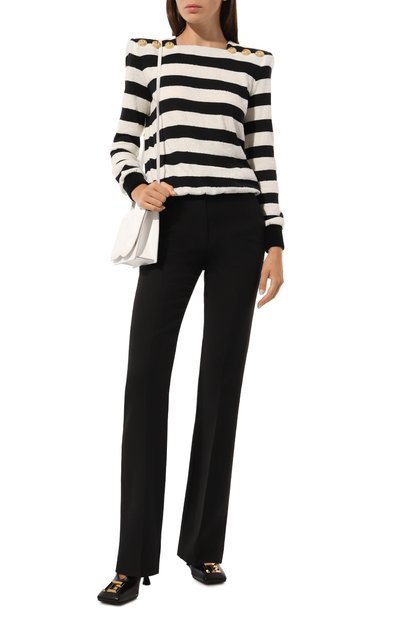 Остроносые бархатные туфли Clara украсили контрастным объемным бантом из гладкого атласа. Модель установили на высокую шпильку, обтянутую лаковой кожей.