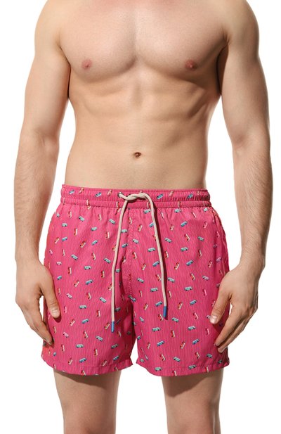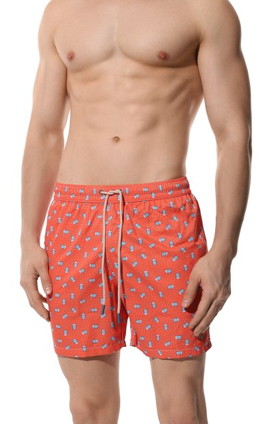 Плавки-шорты с эластичным поясом-кулиской и тремя карманами сшили из быстросохнущего нейлона с паттерном в виде дельфинов. Сзади – фирменный патч и люверсы для отвода воды.