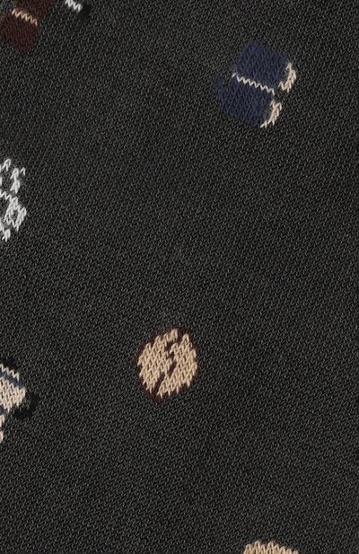 Носки с мысом и пяткой контрастного цвета выполнены из шотландской хлопковой пряжи, укрепленной нитями полиэстера. Аксессуар с широкой манжетой и кеттельным швом украшен фирменным узором.