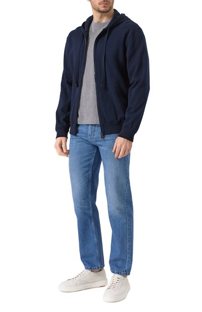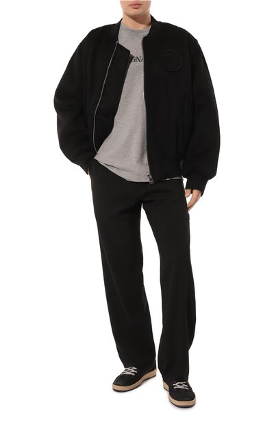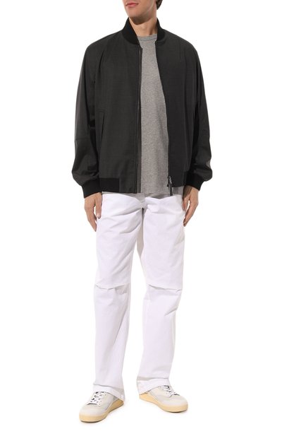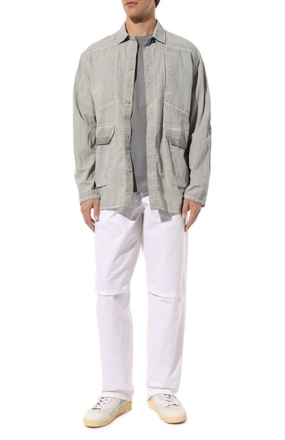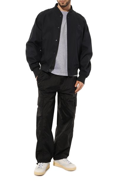 Футболку со слегка спущенной линией плеч и ребристой горловиной выполнили из хлопкового джерси. Спереди модель украсили контрастным принтом с логотипом марки.