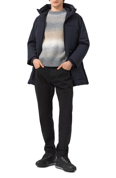 Свитер с фактурным геометрическим узором связали из пряжи, в составе которой соединили хлопок и модал. Модель с круглым вырезом одинаково хорошо смотрится и сама по себе, и в комплекте с рубашкой.