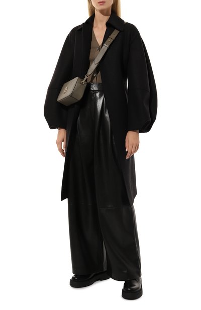 Брюки Tanjura2 с двойными защипами спереди и контрастной брендированной фурнитурой выполнили из искусственной кожи. Модель кроя loose fit дополнили боковыми прорезными и задними накладными карманами.
