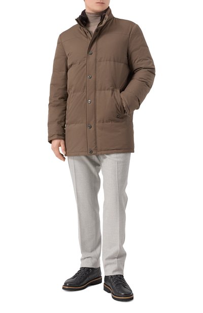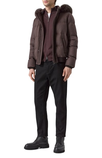 Пуховик из кашемира и шерсти шиншиллы с отделкой из лисицы