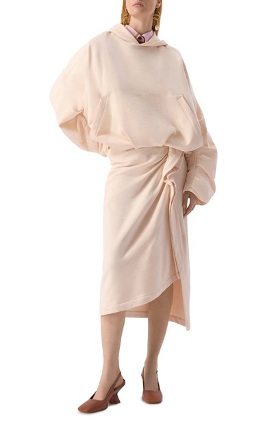 Асимметричная миди-юбка в виндзорскую клетку сшита из ткани стрейч на основе полиэстера и вискозы. Модель с объемной драпировкой застегивается потайной молнией сбоку.