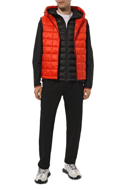 Стеганый жилет Core Identity с воротником-стойкой сшит из матового нейлона. Модель с открытым внутренним и парой боковых карманов на молниях утеплена утиным пухом. На груди расположен логотип марки.