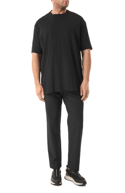 Футболка с небольшими боковыми разрезами удачно впишется в базовый гардероб. Модель выполнили из трикотажа на основе хлопка и лиоцелла. Сзади под горловиной вышили фирменный акулий плавник в тон.