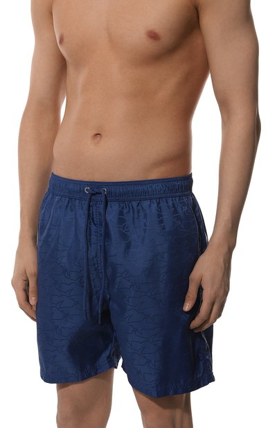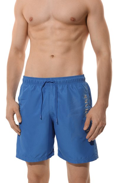 Плавки-шорты из полиэстера дополнили эластичным поясом-кулиской. Левую брючину украсили логотипом марки, который повторили на одном из трех карманов. В комплект включили чехол и бре ндированный брелок.
