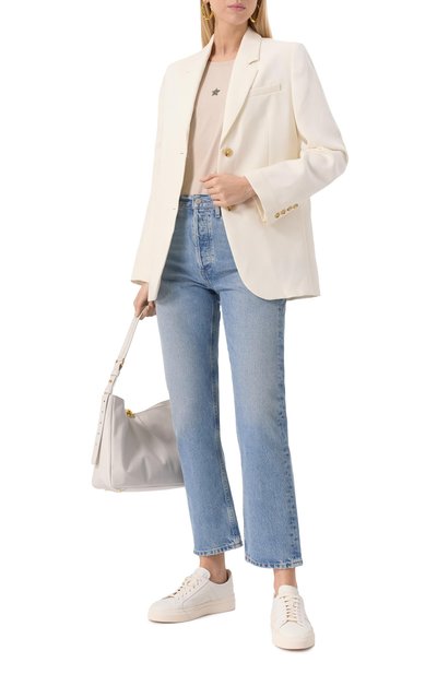 Прямые джинсы 90’s Pinch Waist с ширинкой на пуговицах выбелили и декорировали потертостями, чтобы придать состаренный вид. Модель с пятью карманами сшили из облегченного денима, в котором органический и переработанный хлопок соединили со вторичным лиоцеллом.
