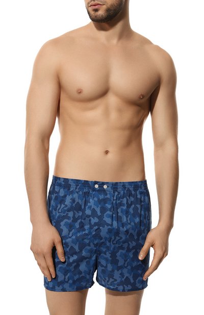 Для пошива боксеров с абстрактным принтом использовали хлопковый батист. Модель с эластичным поясом и небольшими боковыми разрезами дополнили магнитной застежкой.