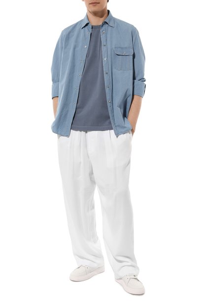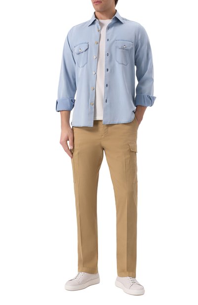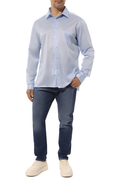 Выбеленную джинсовую рубашку кроя Regular fit украсили стежками фирменного алого оттенка на нагрудном кармане. Модель со скошенными манжетами, фигурным низом и перламутровыми пуговицами сшили из стрейчевого денима.