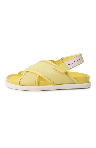 Кожаные сандалии с логотипом сбоку дополнили ремешками велкро, позволяющими точно отрегулировать посадку. Модель установили на широкую подошву с формованной стелькой.