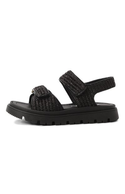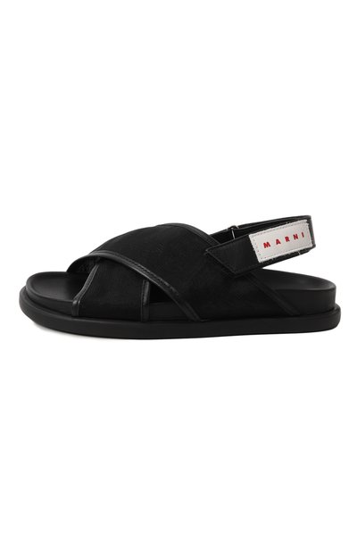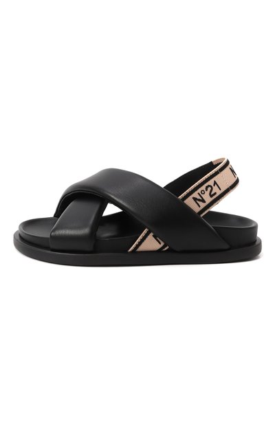 Сандалии с перекрещивающимися широкими перемычками сшили из гладкой искусственной кожи. За комфорт отвечают нескользящая подошва с формованной стелькой и эластичная брендированная лента на заднике.