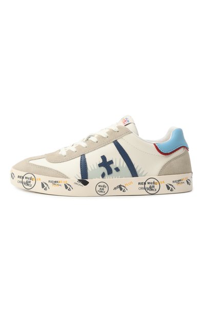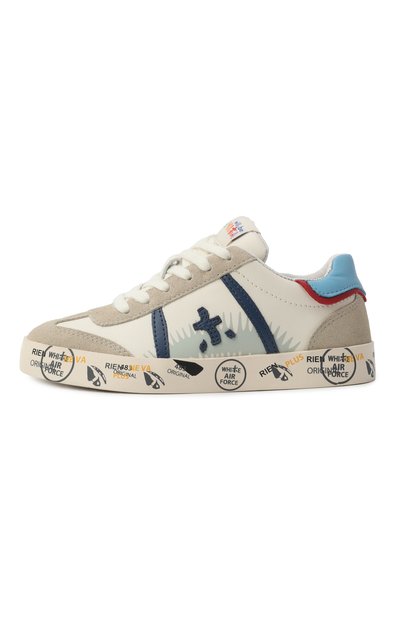 Кеды на двухцветной подошве с протектором изготовили из гладкой кожи и замши. Модель украсили изображением кленового листа с логотипом сбоку и брендированной нашивкой на язычке.