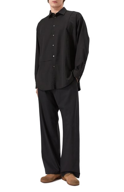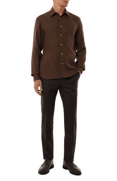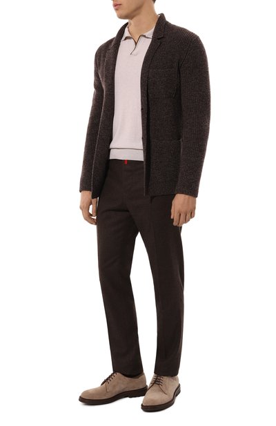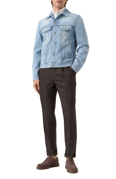 Дерби с миндалевидным мысом выполнили из выделанной вручную замши. Модель с узким кожаным кантом поставили на многослойную подошву с квадратным каблуком.