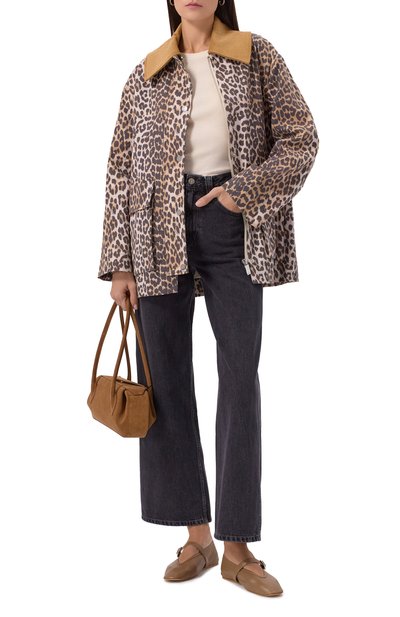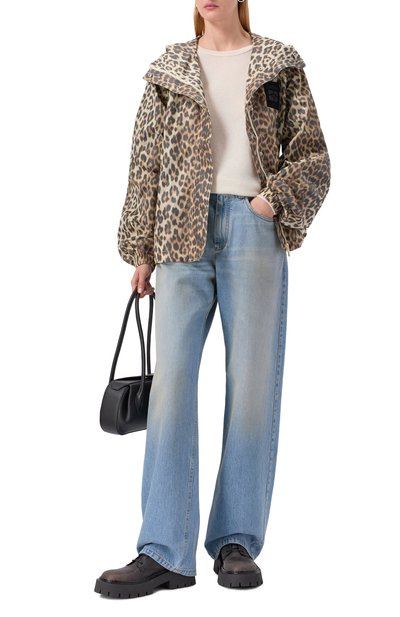Джинсовую куртку с леопардовым принтом выполнили из органического хлопка с небольшим добавлением эластана. Изделие с двумя нагрудными и двумя боковыми карманами украсили сзади брендированным патчем. Наши стилисты предлагают создать total образ с парными джинсами и черной майкой.