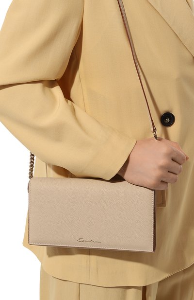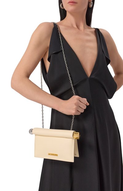 Клатч Le Rond Carre с логотипом марки в тон спереди выполнили из матовой кожи ягненка. Модель с внутренним слотом закрывается магнитной застежкой с шармами в виде куба и сферы по краям. В комплекте – серебристый ремень-цепочка.