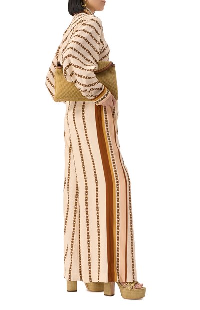 Босоножки Marbella с отделкой рафией на каблуке и стельке выполнили из замши. Таким же материалом обтянули круглую пряжку на широком ремешке, обвивающем щиколотку.