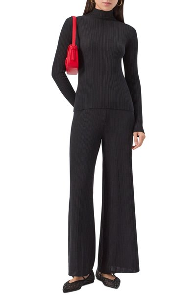 Расклешенные брюки со стрелками и высокой посадкой дополнили парой боковых и двумя прорезными ка рманами спереди. Модель из шерстяного крепа оттенка Nightfall green составит идеальный комплект с парным жакетом.