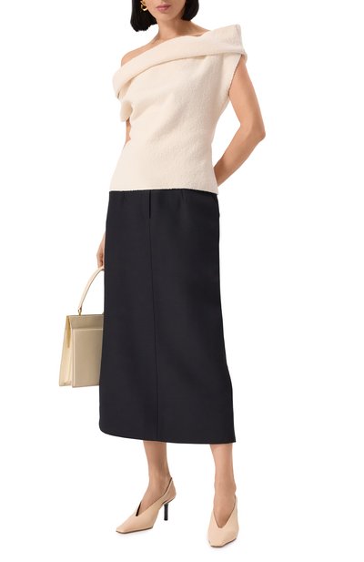 Кроп-топ с узором PB Labyrinth связали из вискозы с добавлением металлизированных нитей и полиэстера. На спинке предусмотрели акцентную молнию, которая гармонирует с кнопками Double Chain Lion на широкой бретели.