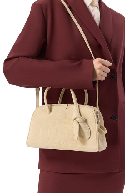 Мини-сумку B-Buzz со съемным регулируемым ремнем сшили из зерненой телячьей кожи. Фактуру оттенили гладкой оплеткой на ручке и металлической эмблеме B-Twist. Аксессуар с внутренним карточным слотом и подкладом из экозамши застегивается магнитной кнопкой.