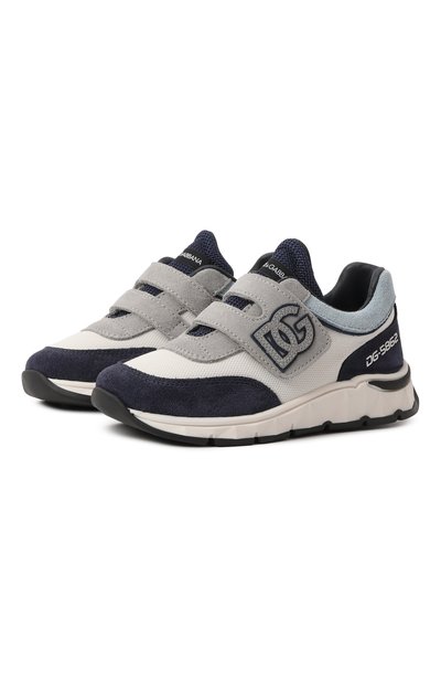 Кроссовки First Steps DG на широкой подошве выполнили из сетчатого текстиля и спилка. Модель из коллекции DNA украсили брендированными нашивками сбоку и на язычке и монограммой DG на сдвоенном ремешке велкро.