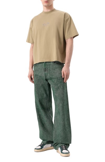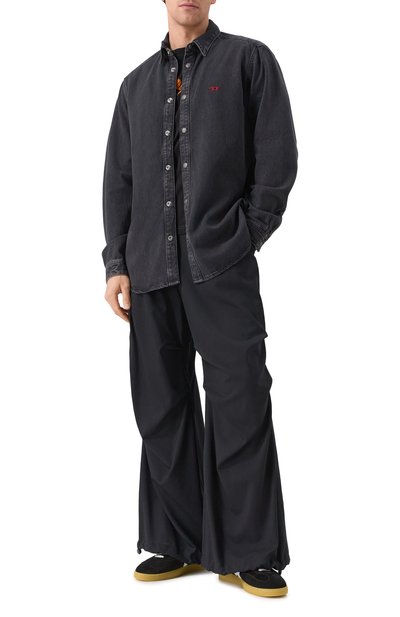 Кеды из замши дополнили фирменной кожаной аппликацией и фигурной накладкой на заднике. Модель с брендированным патчем на язычке поставили на широкую креповую подошву с рифленым протектором.