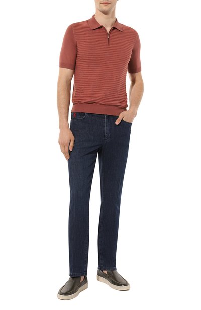 Поло с жаккардовым узором спереди связали из микса шелка и хлопка. Модель с отложным воротником, поясом и манжетами в рубчик застегивается молнией с брендированным пуллером. Сзади под горловиной — фирменная пластина.