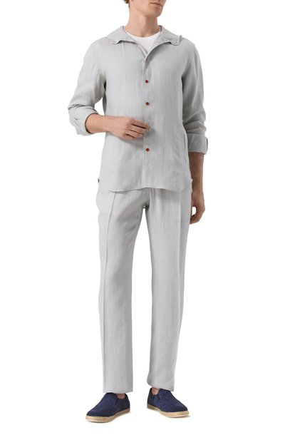 Эспадрильи из замши отделаны внутри тонкой кожей. На мягком заднике и рядом с язычком предусмотрены эластичные вставки. Плетеная подошва дополнена резиновым слоем.