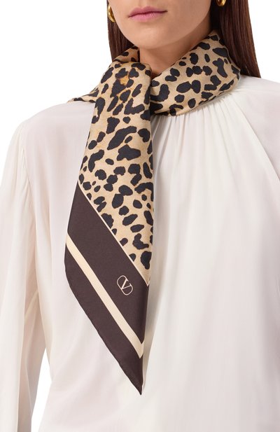 Квадратный платок из коллекции Everyday можно носить не только на шее, но и использовать как декор сумки. Аксессуар выполнен из шелкового твила с анималистичным принтом и р еалистичным изображением леопарда.