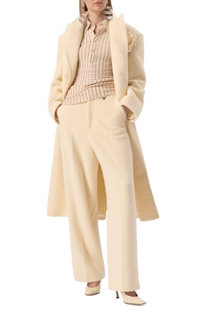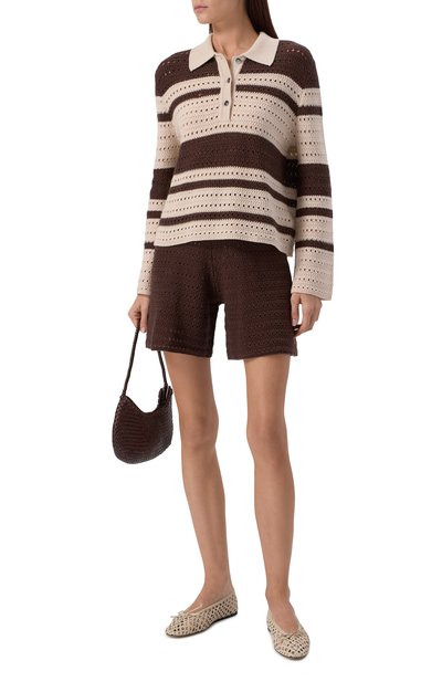 Для изготовления поло использовали ткань в рубчик на основе вискозы, укрепленной нейлоном. Принадлежность марке обозначили брендированной пластиной, которую закрепили над поясом спереди.