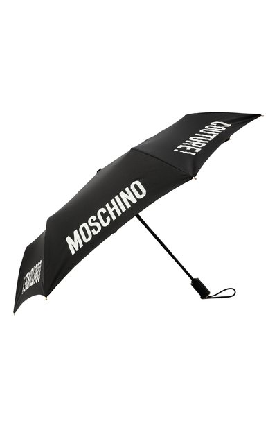 Купол зонта-автомата с принтом в виде логотипа марки и штрихкода выполнили из полиэстера. Аксессуар с металлическим каркасом, восемью спицами и системой «антиветер» дополнили брендированной ручкой с текстильной петлей.