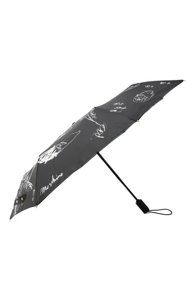 Купол зонта-автомата и комплектный чехол выполнили из полиэстера с принтом, напоминающим полосы газет с логотипом марки. Модель с металлическим каркасом, восемью спицами и системой «антиветер» дополнили брендированной ручкой с текстильной петлей.