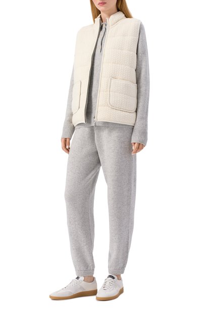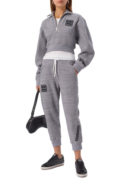 Джоггеры с эластичным поясом выполнили из хлопкового трикотажа с добавлением полиэстера. Неравномерно окрашенную модель с рельефным логотипом спереди дополнили боковыми и задним карманами с молниями.