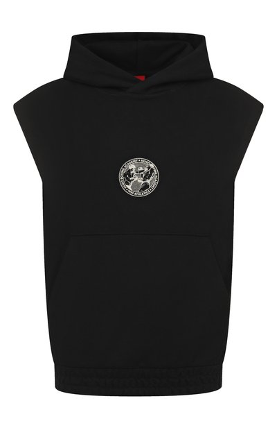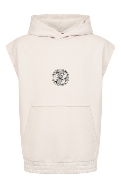Жилет S-boxt сшили из органического хлопкового трикотажа. Модель с капюшоном и карманом «кенгуру» украсили фирменной вышитой эмблемой.