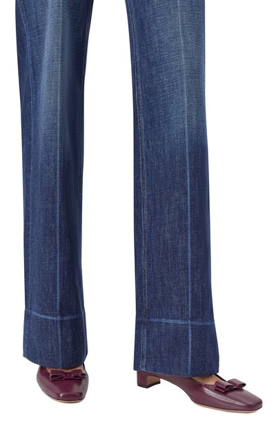 Туфли Vara на невысоком блочном каблуке выполнили из телячьей матовой кожи. Модель с круглым мысом украсили текстильным бантом с золотистой фирменной фурнитурой.