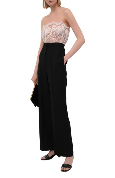 Боди с чашечками-балконет и регулируемыми бретелями сшили из эластичного шелкового атласа с леопардовым мотивом. Модель с кружевной отделкой застегивается молнией сзади.