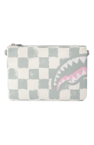 Клатч Vanquish с ручкой на задней панели и съемными ручкой-петлей и ремешком выполнили из поливинилхлорида с принтом Shark Mouth. Внутри предусмотрели карман на молнии.