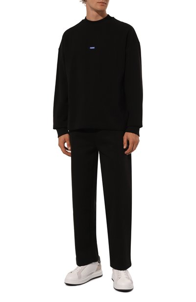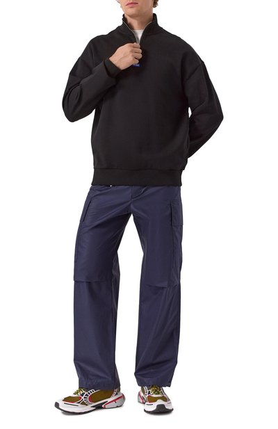 Свитшот Silas с узкой тесьмой, прикрывающей швы, выполнили из стрейчевого хлопкового трикотажа с добавлением полиэстера. Высокий ворот с разрезом сзади украсили прорезиненным логотипом.