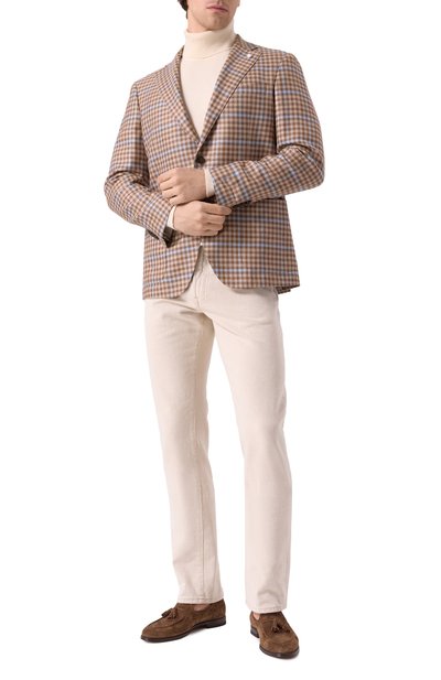 Замшевые лоферы с рельефным швом на союзке и стичингом по краю украсили кисточками. Модель на наборном квадратном каблуке сшили с применением конструкции Blake, поэтому она получилась гибкой и прочной.