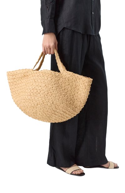 Сумку Coco мадагаскарские ремесленницы связали вручную крючком из рафии. Аксессуар с длинными плетеными ручками, регулируемыми узлами, дополнили внутренним хлопковым карманом.