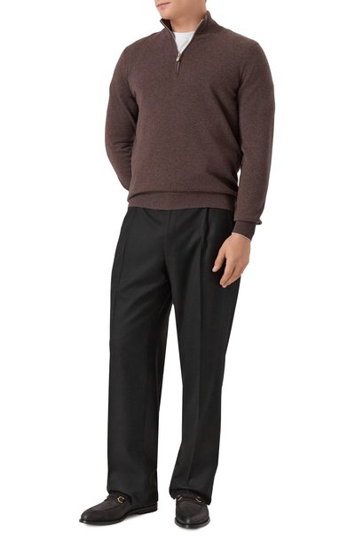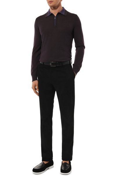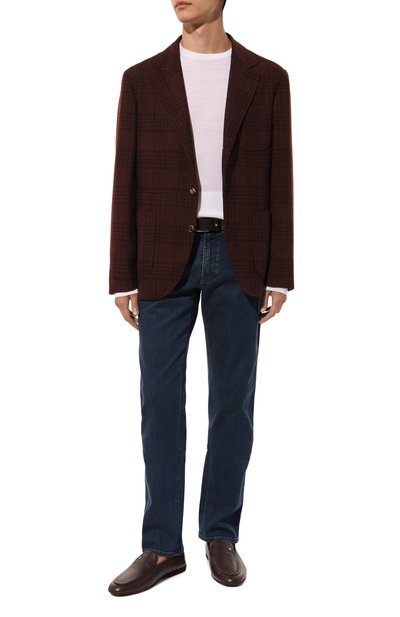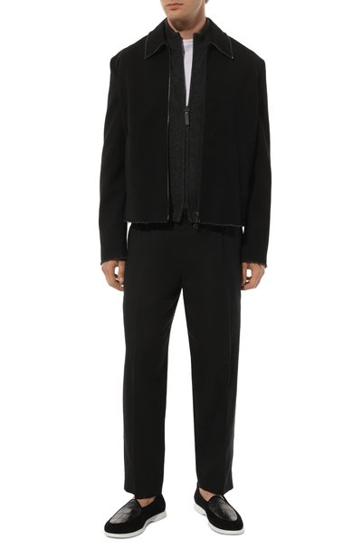 Лоферы с рельефным швом, повторяющим форму мыса, выполнили из зернистой кожи Soft kid. Таким же материалом обшили края сплошной подошвы. Союзку украсили фирменной металлической эмблемой.