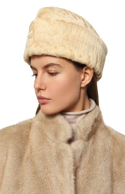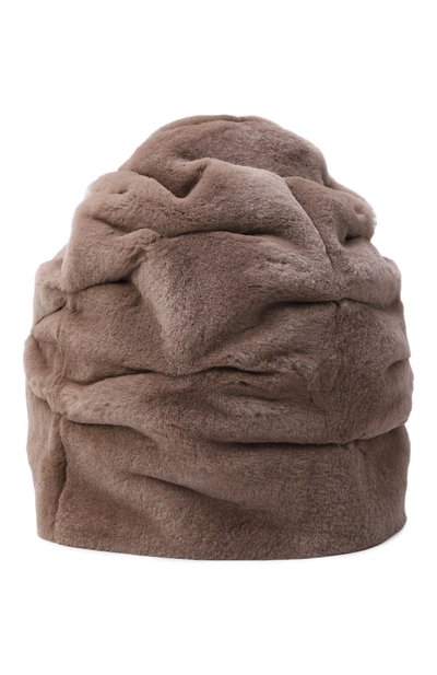 Чалму с жестким каркасом выполнили из текстурной шерсти. Материал задрапировали скульптурными складками, сформировав эффект запаха спереди. Сзади модель украсили фирменной эмблемой VLogo.