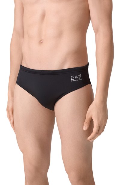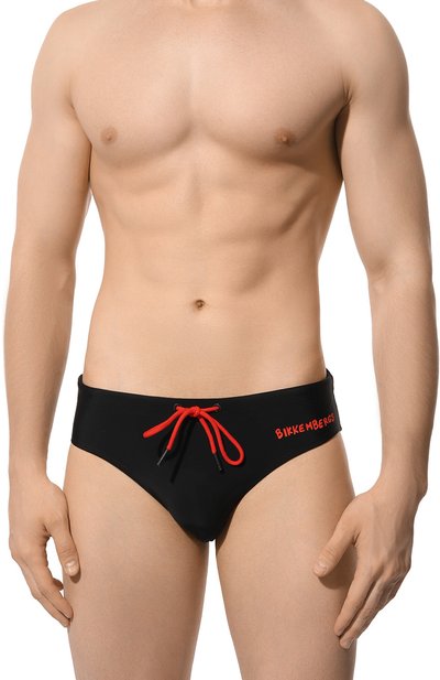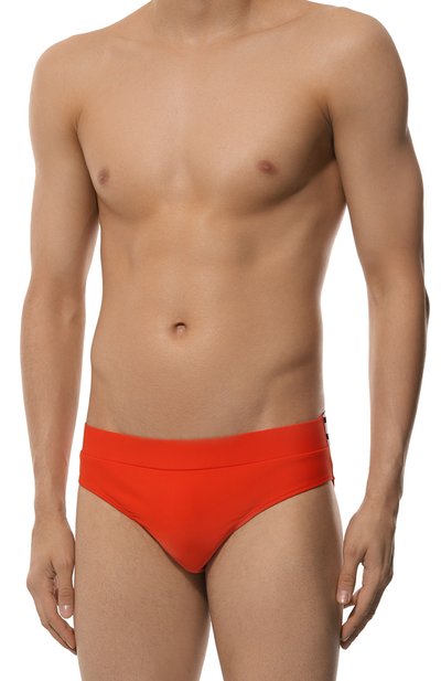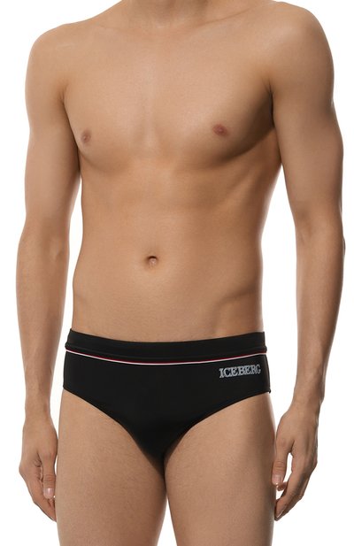 Плавки на поясе с внутренней кулиской выполнили из полиамида стрейч. Принадлежность модели бренду подчеркнули небольшим контрастным логотипом слева.
