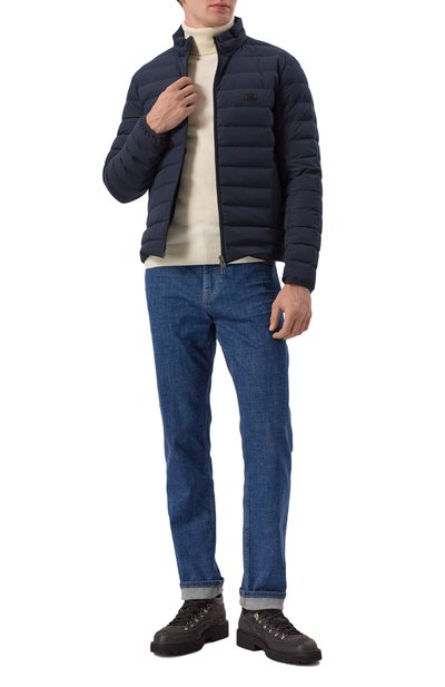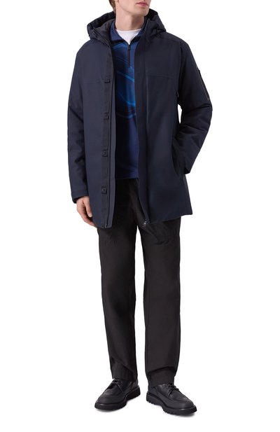 Куртку H-Cenitos с регулируемыми манжетами на кнопках сшили из водоотталкивающего переработанного полиэстера. Спереди изделие украсили брендированной вставкой в тон, а воротник-стойку сзади и на изнанке подчеркнули фирменным триколором. Утепленная модель с внутренними и двумя внешними карманами застегивается молнией с защитой от защемления.