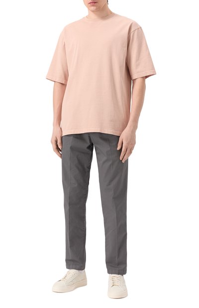 Для изготовления футболки Tiburt с фактурным жаккардовым микроузором использовали хлопковую пряжу mouliné с добавлением полиэстера. Кант вдоль круглого выреза подчеркнули рельефной полоской.